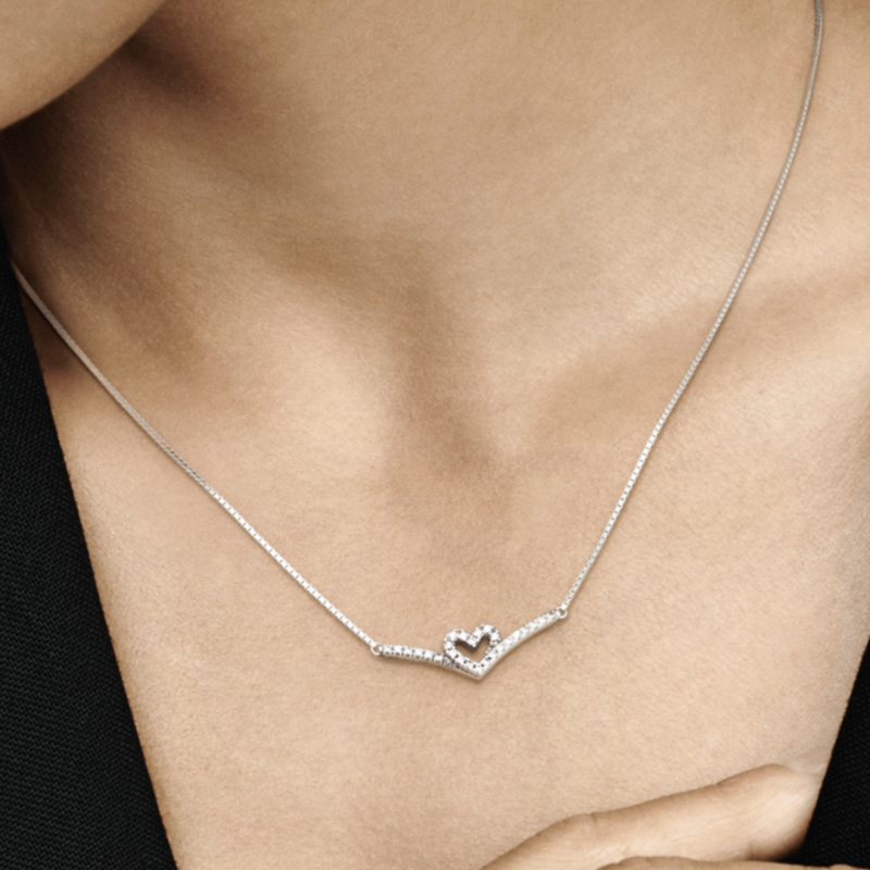 R$598,90 Em até 3x de R$199,63 sem juros R$568,96 no PixColar Chevron Coração Brilhante – Pandora – Prata 925