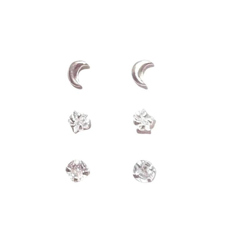 Trio de Brincos Lua – Estrela – Ponto de Luz Zircônia – Prata 925