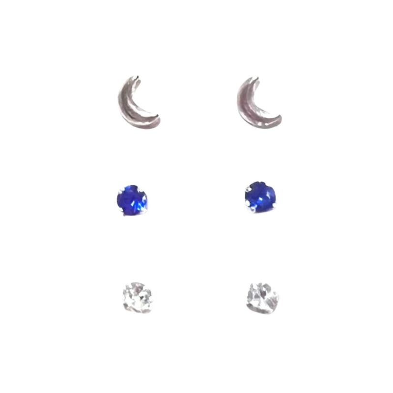 Trio de Brincos Lua – Ponto de Luz – Azul e Cristal – Prata 925