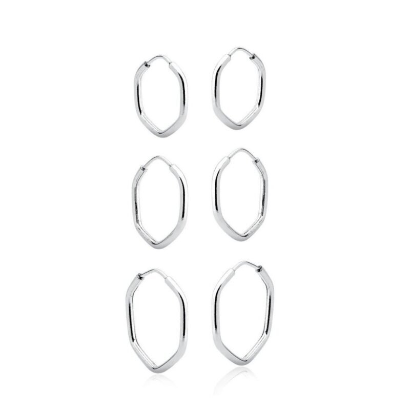 Trio Argolinha Hexágono 1,5mm – Prata 925