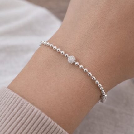 Pulseira de Bolinha c/ Esfera Cravejada – Pandora – Prata 925